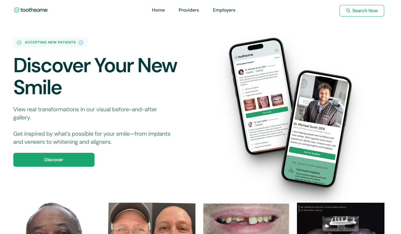 The Toothsome platform has revolutionized dental care accessibility, creating a trusted marketplace that connects patients with quality dental professionals. The platform is transforming how people approach dental care by eliminating the uncertainty and barriers that previously prevented access to treatment.